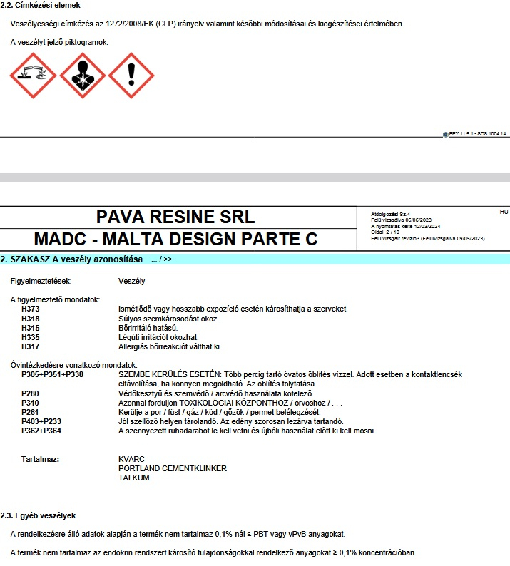 A Pava Resine Malta Design egy vízzel emulgeálható, háromkomponensű, epoximódosított keverék, amelyet vízszintes felületek kiegyenlítésére és helyreállítására fejlesztettek ki. Félig önterülő tulajdonságai révén egyenletes és sima alapot biztosít, így kiválóan alkalmas további bevonatok, dekorfelületek vagy Pava Resine rendszerek alá.
