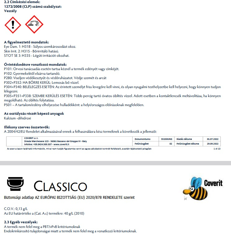 A Classico az egyik zászlóshajó terméke a Coverit termékcsaládnak, népszerűségét a könnyű megmunkálásnak és az önmagában is kiemelkedően magas fényének köszönheti. Időtlen szereplője minden építési projektnek, ötvözve a hagyományt, a stílust és a modernséget.
